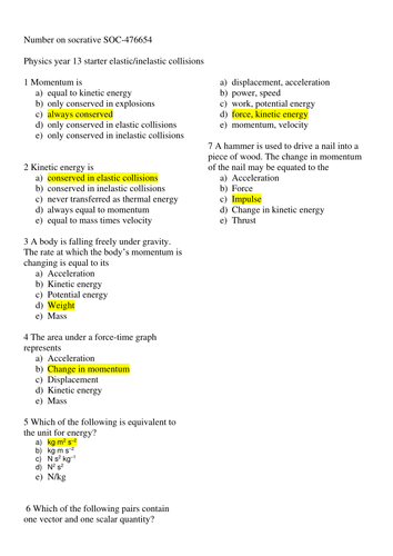 Elastic And Inelastic Collisions - Elastic And Inelastic Collisions Teaching Resources : Note that the classification of a collision as elastic or inelastic is independent of the reference frame from which the collision is viewed.